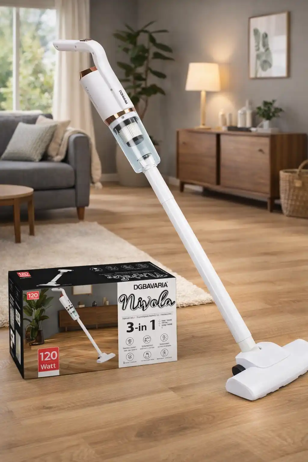 Scopa elettrica Nivola 3 in 1 DGBAVARIA da 120W progettata per offrire una pulizia pratica e veloce in tutta la casa. Grazie al design compatto e leggero, è ideale per aspirare pavimenti, tappeti, divani e superfici difficili da raggiungere.