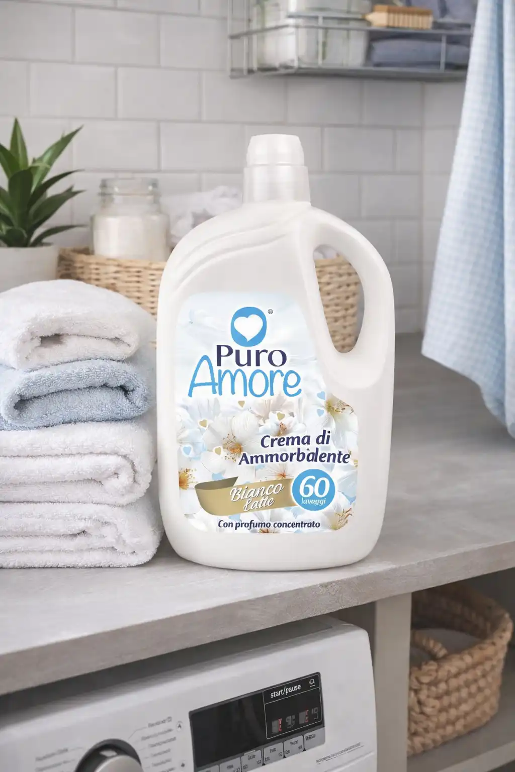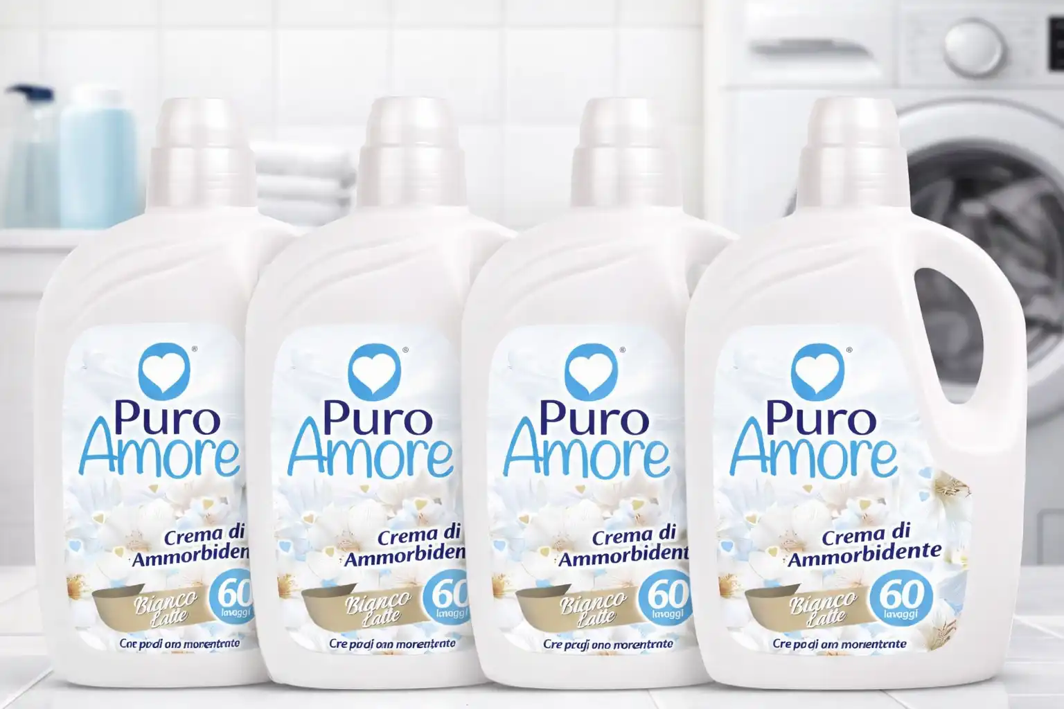 4x Puro Amore Ammorbidente Bianco Latte 3L 60 Lavaggi Profumo Bucato