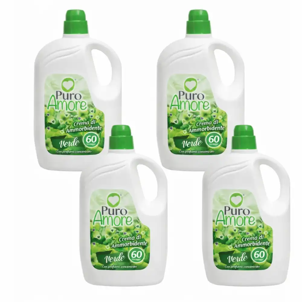 4x Puro Amore Ammorbidente Verde 3L 60 Lavaggi Profumo Fresco Bucato