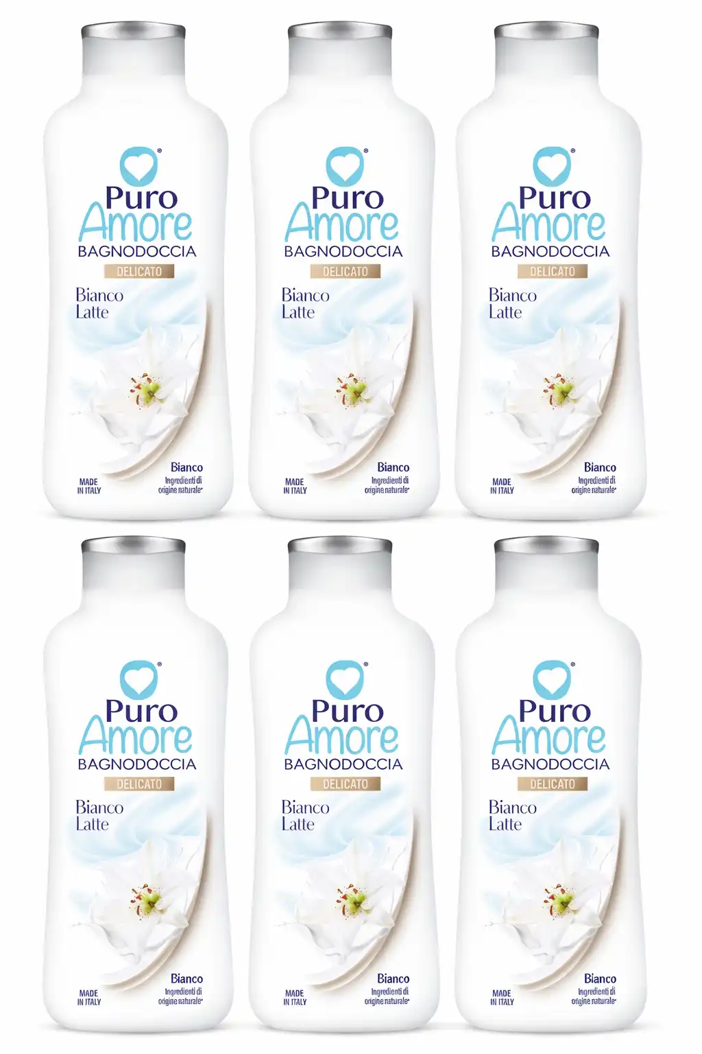 6x Puro Amore Bagnodoccia Bianco Latte 650ml Delicato Profumo Corpo