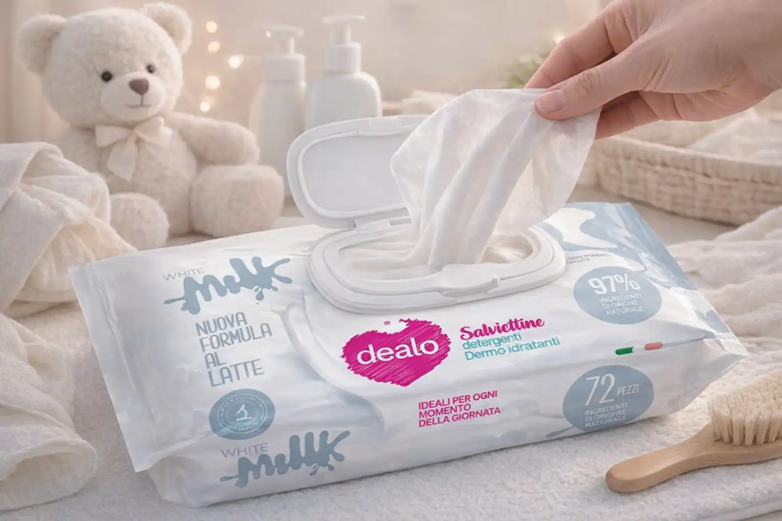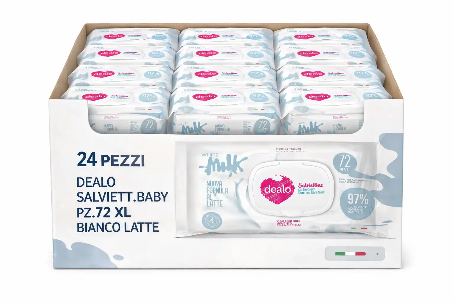24x Dealo Salviettine Baby XL 72pz Bianco Latte Delicate Igienizzanti