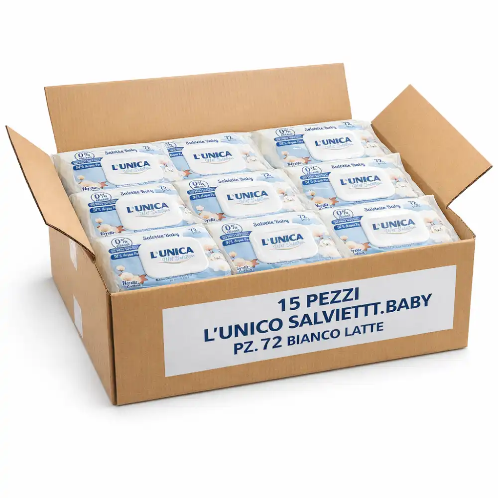 La confezione da 15 pacchi da 72 salviettine è ideale per avere sempre una scorta disponibile per casa, viaggio o uso quotidiano.