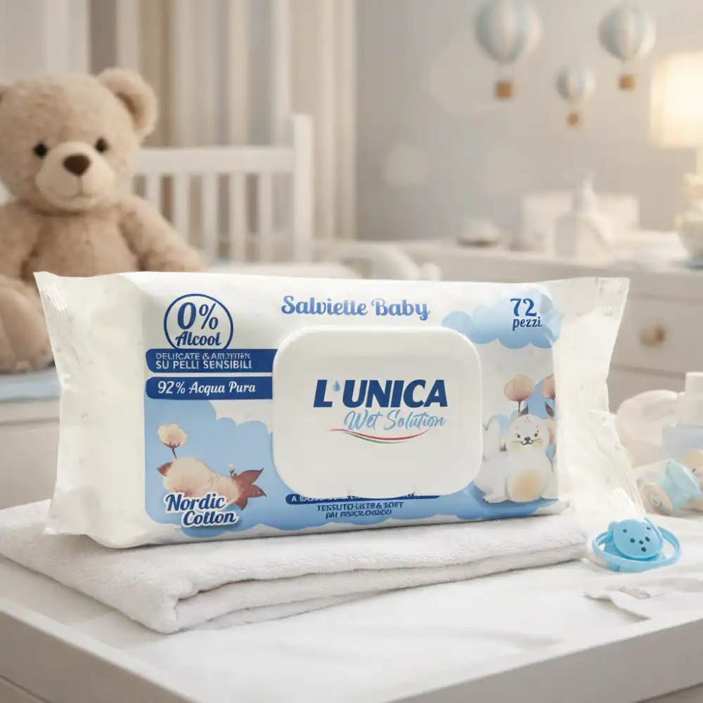 Le salviettine baby L’Unico sono ideali per la pulizia quotidiana della pelle, offrendo delicatezza e sicurezza anche per le pelli più sensibili. Grazie alla loro formula con il 97% di acqua pura, detergono in modo efficace senza irritare.