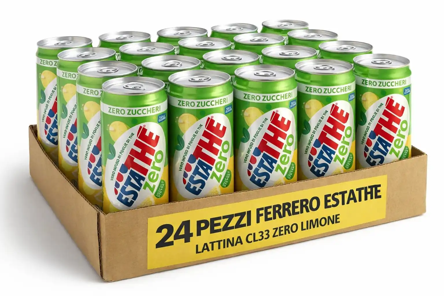 24x Ferrero Estathe Zero Limone Lattina 33cl Senza Zuccheri Tè Freddo Fresco