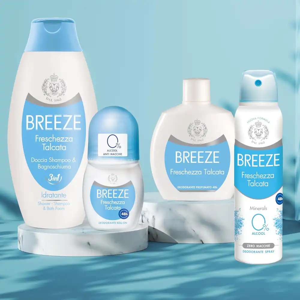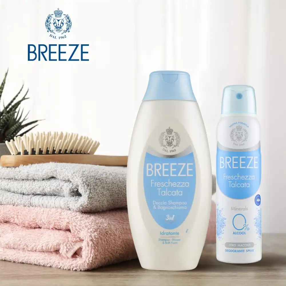 Prova la delicatezza e la freschezza naturale di Breeze Freschezza Talcata Deo Spray, il deodorante pensato per offrire protezione efficace fino a 48 ore con una formula extra delicata.