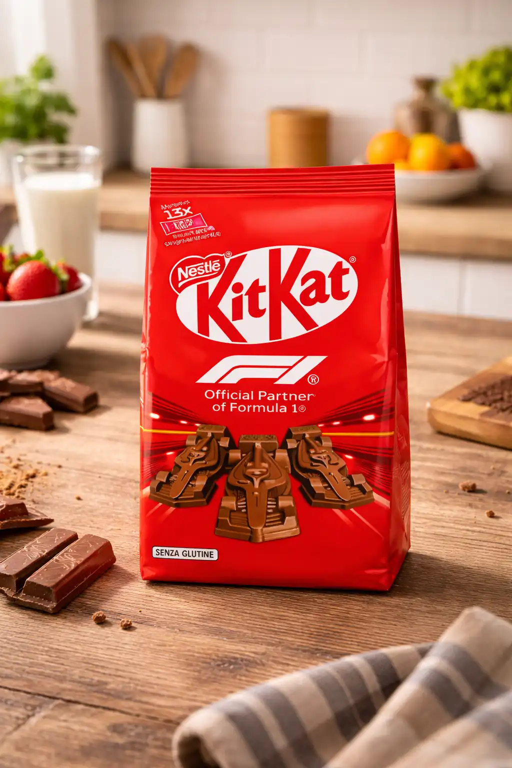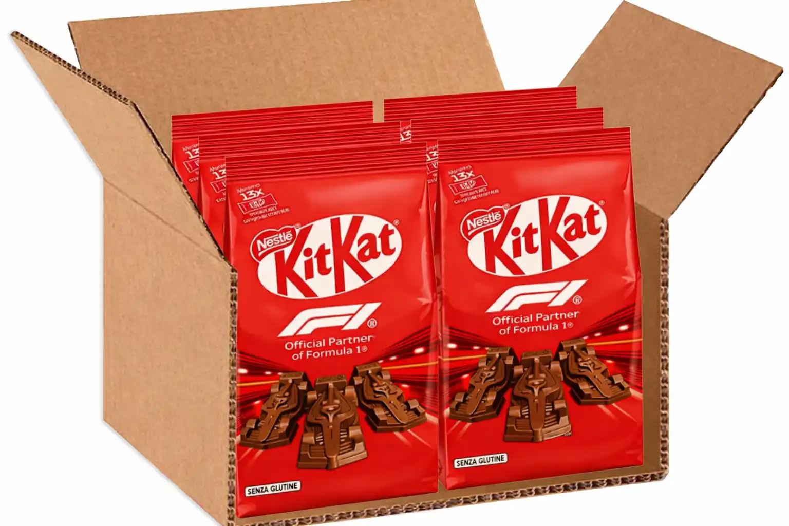- Set composto da 6 confezioni di Kit Kat cioccolatini al latte senza glutine, con originale forma di auto sportiva ispirata al mondo della Formula 1