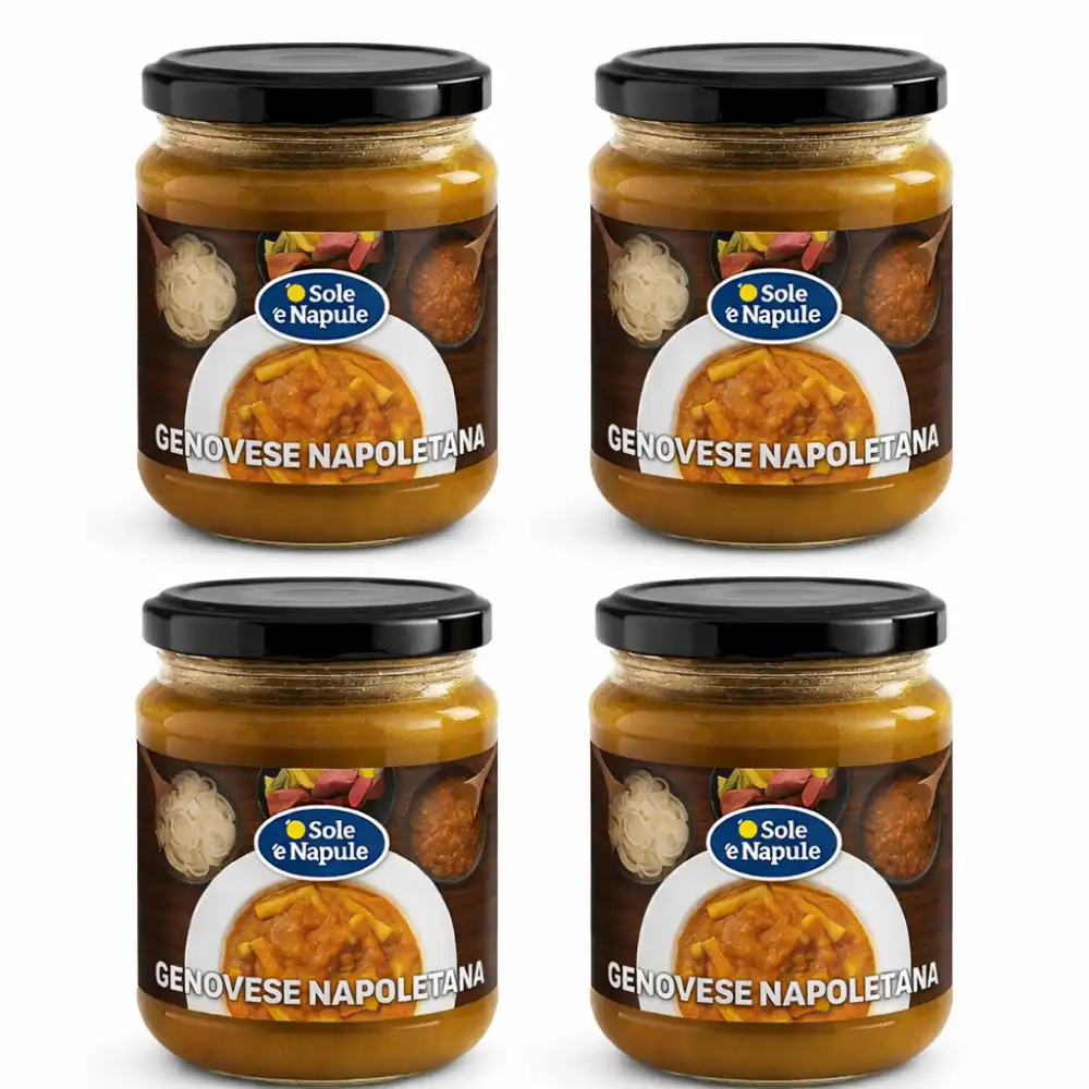 Confezione composta da 4 vasetti di sugo pronto alla Genovese da 290 g ciascuno, ispirato alla tradizione della cucina napoletana, celebre per i suoi sapori ricchi, avvolgenti e autentici.